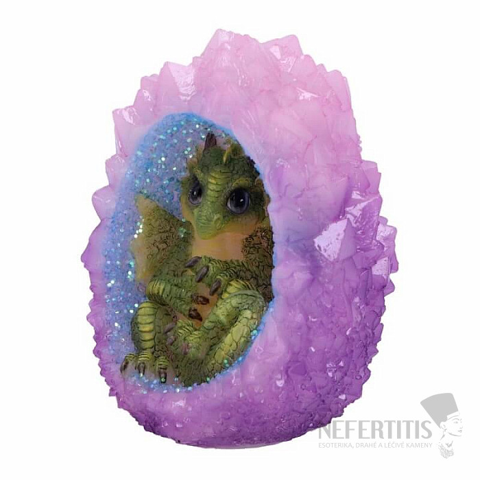 Hand-painted figurine made of high-quality polyresin. A newborn green baby dragon rests in a geode nest. The nest is illuminated by soft blue LED light. This beautiful figurine is not only a perfect addition to the… more »