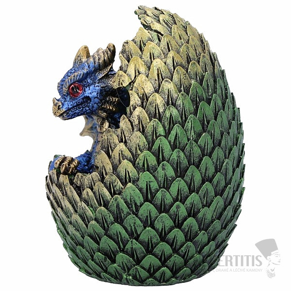 A statuette of a newborn blue dragon sitting in its egg, which looks like an agate geode. This beautiful statuette is not only a perfect addition to the collection of every dragon collector, but also a beautiful individual decoration.