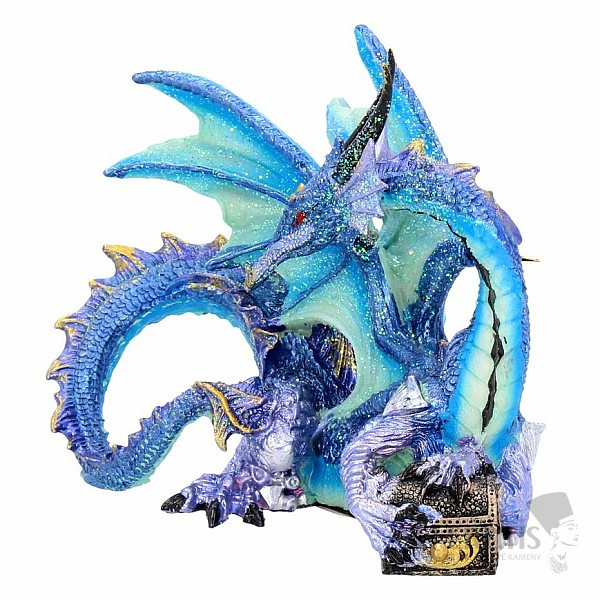 A beautiful statuette of a purple-blue dragon, which carefully guards its treasure chest. This beautiful statuette is not only a perfect addition to the collection of every dragon collector, but also a beautiful individual decoration.