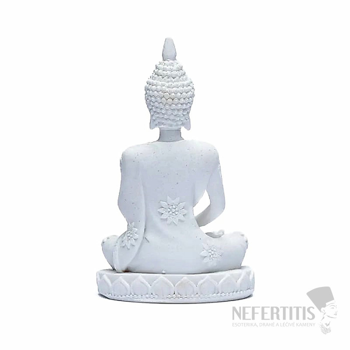 A beautiful Thai statue of meditating Buddha in white . Symbolism: the meditating Buddha expresses concentration and stability. The height is approx. 11 cm. The figurine is made of durable polyresin. Illustrative image.