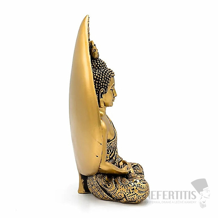 The statue is crafted with an emphasis on fine details: elaborate Thai robes, decorative surface texture, ornamental elements and a delicate patina that gives it the authentic look of old temple art. The weight is pleasantly stable, so the statue is suitable for a home altar, relaxation area, study and living room. Material: polyresin, dimensions: approx. 10 x 17 x 24 cm. Illustrative image.