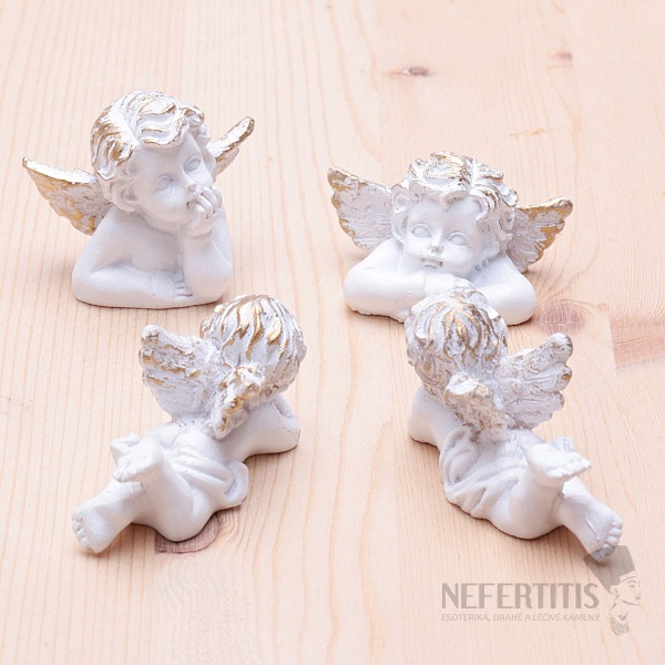 A beautiful statuette of a cute little angel for good luck with a patina in gold, in the shape of a bust with folded arms, in a gift bag. The angel is the messenger of the gods in many religions, he is our bodyguard. The statuette is made of white polyresin, durable resin, with gold-decorated wings and hair. Height is about 3 cm.