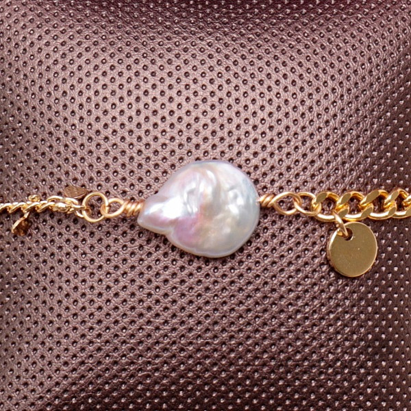 Elegant bracelet with Keshi pearl made of gold-plated stainless steel. Stainless steel is gilded with 18K gold. Fashion bracelet for lovers of accessories with pearls. The bracelet is decorated with small… more »