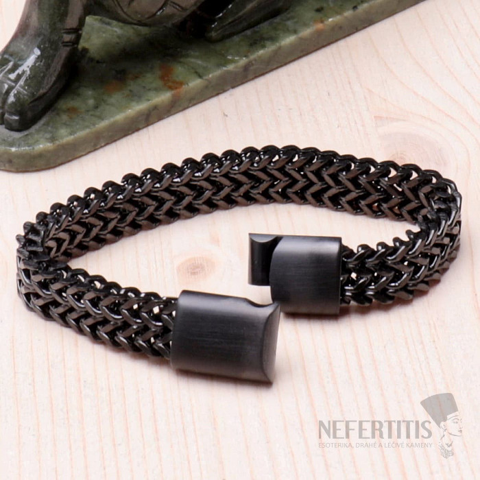 Wheat chain style bracelet made of black stainless steel. Simplicity, durability, design - perfect harmony. Material: stainless steel according to DIN 1.4301 (AISI 304). Jewelery fastening. Illustrative illustration.