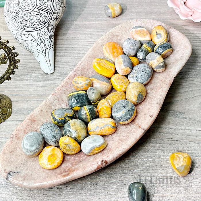 Illustrative depiction of natural material, where the color and structure of the stone may differ from the accompanying photos. However, you will always receive bumblebee jasper of comparable quality.