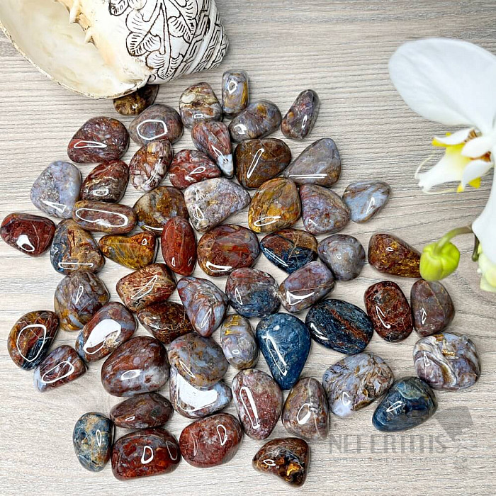The rare pietersite is a wonderful stone that, according to traditions, brings positive energy and gives extraordinary personal strength, courage and self-confidence. Also known as the "storm stone", it is traditionally associated with stormy elements. It is said to help break the feeling of loneliness and free its owner from dependence on beliefs and restrictions imposed by other people. It is also said to remove blocks that have arisen suddenly and clarify all confusion. In mental life, it is said to help the pursuit of one's own truth. It is known as a stone that brings extraordinary support and inner strength as it helps to voice and explore anything that might be blocking your path to achieving the truth. Pietersit is also believed to help resolve old conflicts and express previously suppressed feelings. It is said to have powerful effects on the mind during meditation, it is said to provide deep visions and predictions. It can also be used for shamanic paths. Illustrative depiction of natural material, which may differ in shape, size, texture and color from the illustrative depiction. However, you will always receive pietersite of comparable quality.