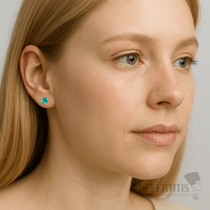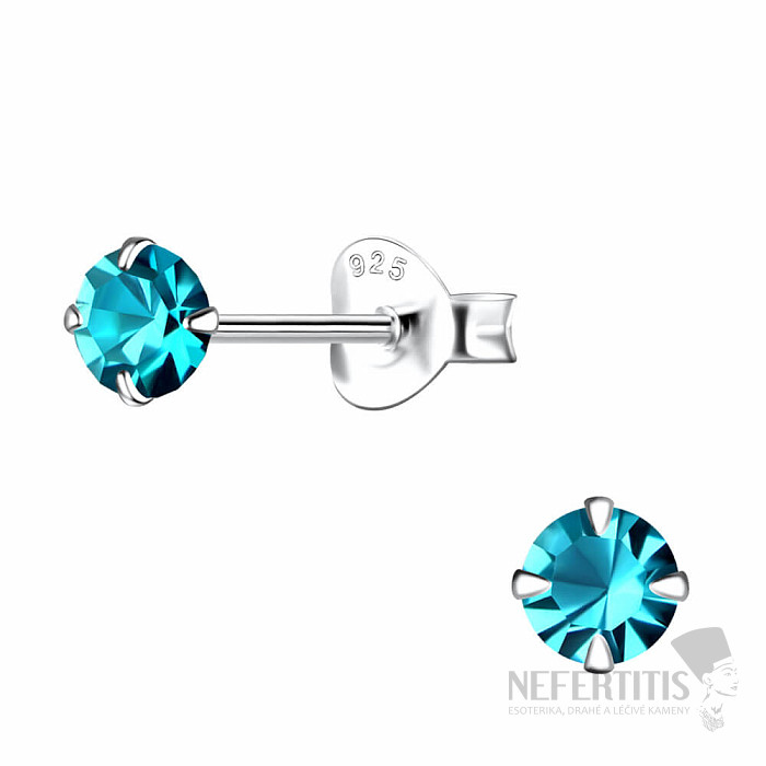 These delicate silver stud earrings are made of 925/1000 sterling silver and set with round blue zircons with a diameter of 4 mm. Their weight is 0.37 g, which makes them a light and comfortable piece of jewelry for everyday wear. Stud fastening.