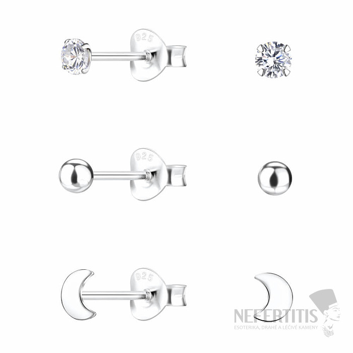 This 925/1000 silver stud earring set includes three pairs of earrings that complement each other in style. Each pair has a different shape and character, but they are united by a clean design, delicate workmanship and high wearing comfort.
