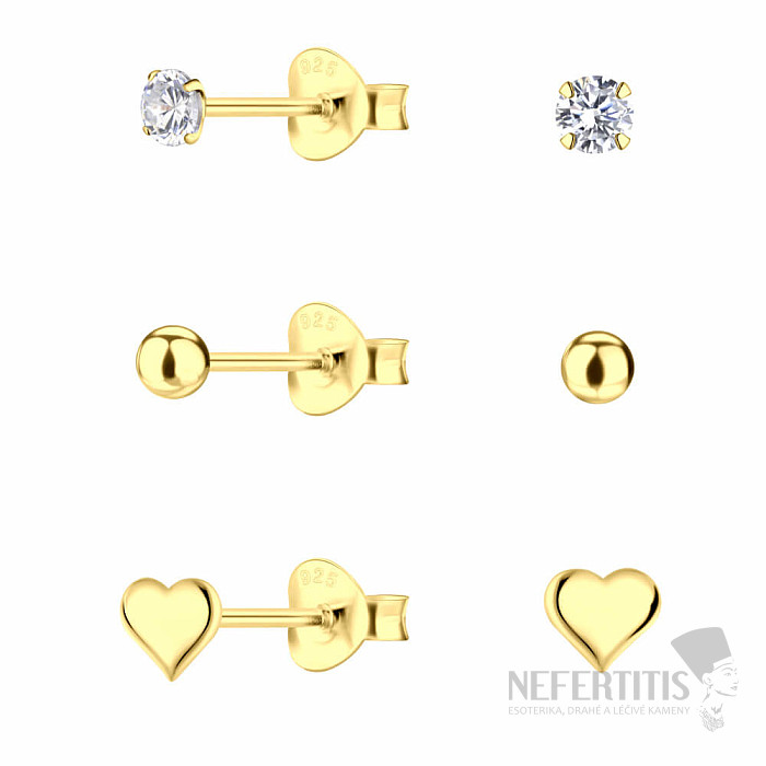 This set of gold-plated earrings with hearts, balls and zircons is ideal for women who love delicate but distinctive accessories. It will perfectly complement a romantic and elegant outfit and, thanks to its symbolism, it represents a beautiful gift of love - for a girlfriend, wife, mother or friend.