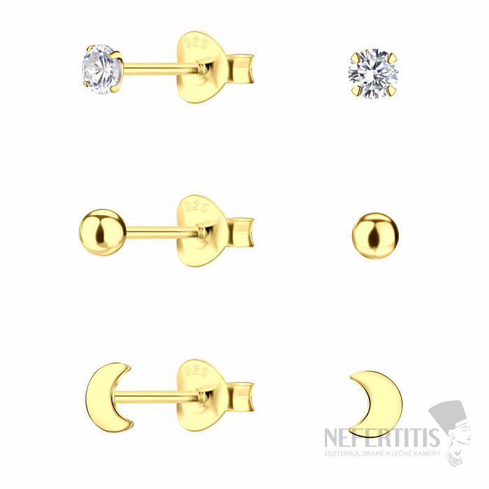 This elegant set of stud earrings is made of 925/1000 sterling silver, which is plated with 18-karat gold and protected with a special e-coating. The thin transparent layer increases scratch resistance, prevents blackening of the silver and makes the jewelry hypoallergenic.