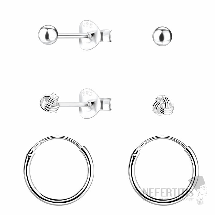 This basic set of silver earrings will delight every woman who loves clean, elegant and variable design . It is ideal as a starter set for a jewelry box, but also as a gift - discreet, practical and always stylish.