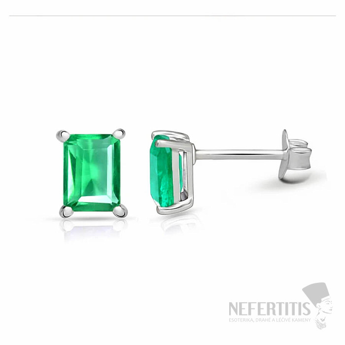 These elegant silver stud earrings are set with beautiful green fluorites , which stand out for their delicate, naturally clear color and exceptional clarity. The stones are cut into an emerald cut – an iconic rectangular shape with facets that emphasize the depth of color and optical clarity of fluorite.