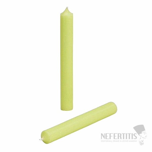 Paraffin unscented pastel green table candle for common romantic and festive moments. Dimensions: 18 x 2 cm, cotton wick.