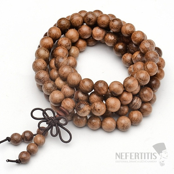 Red-brown colored traditional Japa Mala necklace made of polished exotic wood beads, with a distinctive pattern, for calming the mind, suppressing stress and tension, suitable for meditation. Beads approx. 7 mm are strung on a quality elastic band, length approx. 88 cm.