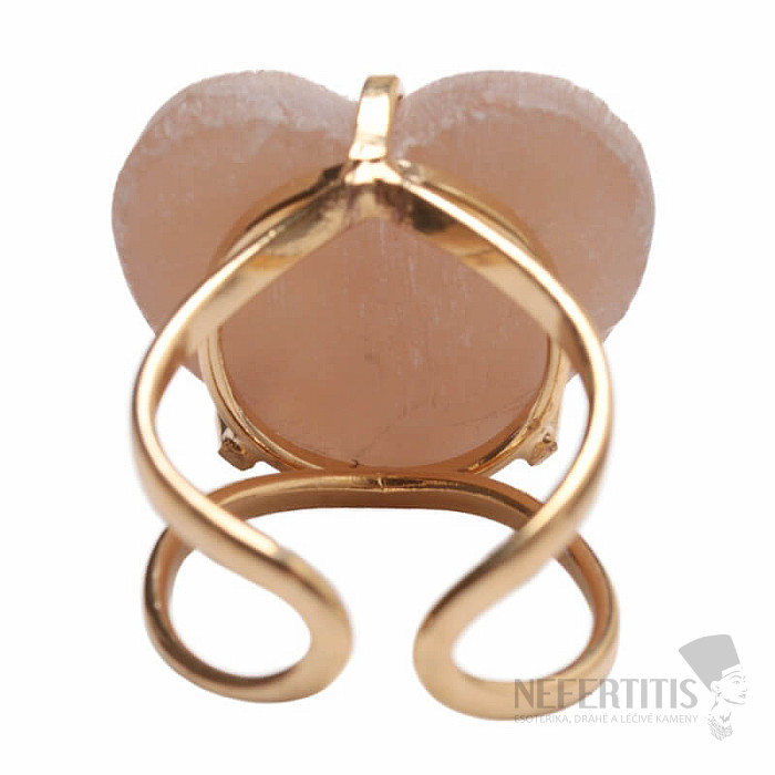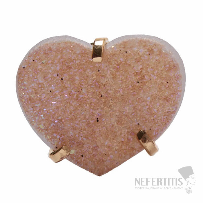 Discover the magic of elegance with this gold-plated ring, whose dominant feature is a heart-shaped agate druse with an aqua aura effect, which is created by applying a thin layer of metal. The druse shimmers beautifully. Each stone is original. Agate is a stone of protection, strength and harmony and will perfectly emphasize your personality. Material: natural stone, gold-plated brass. You are purchasing the ring shown.