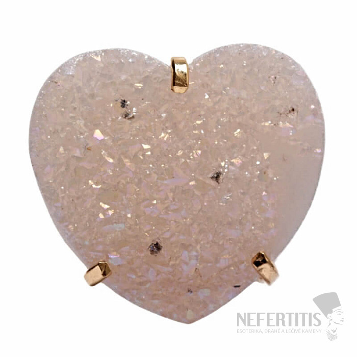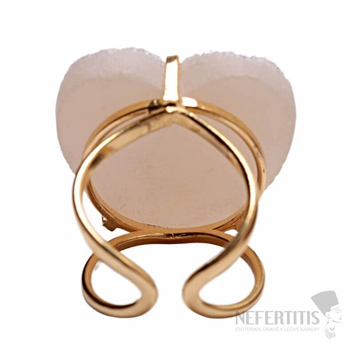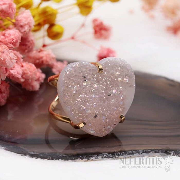 Discover the magic of elegance with this gold-plated ring, whose dominant feature is a heart-shaped agate druse with an aqua aura effect, which is created by applying a thin layer of metal. The druse shimmers beautifully. Each stone is original. Agate is a stone of protection, strength and harmony and will perfectly emphasize your personality. Material: natural stone, gold-plated brass. You are purchasing the ring shown.