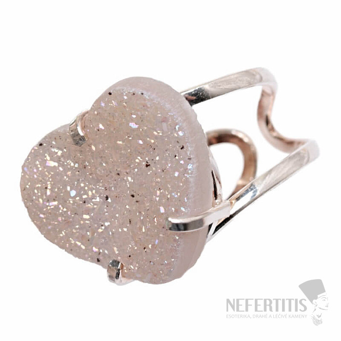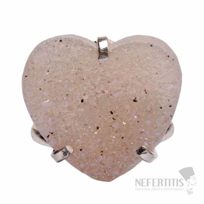 Discover the magic of elegance with this silver-plated ring, whose dominant feature is a heart-shaped agate druse with an aqua aura effect, which is created by applying a thin layer of metal. The druse shimmers beautifully. Each stone is original. Agate is a stone of protection, strength and harmony and will perfectly emphasize your personality. Material: natural stone, silver-plated brass. You are purchasing the ring shown.