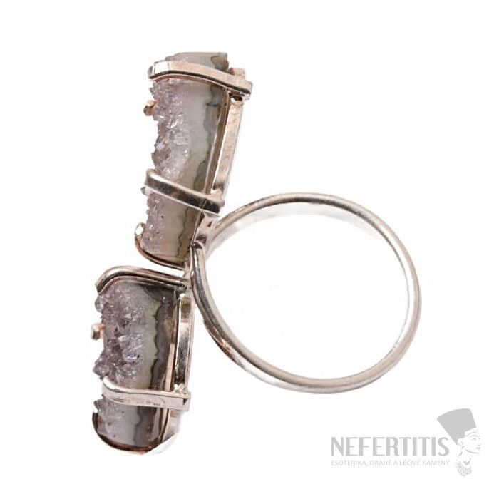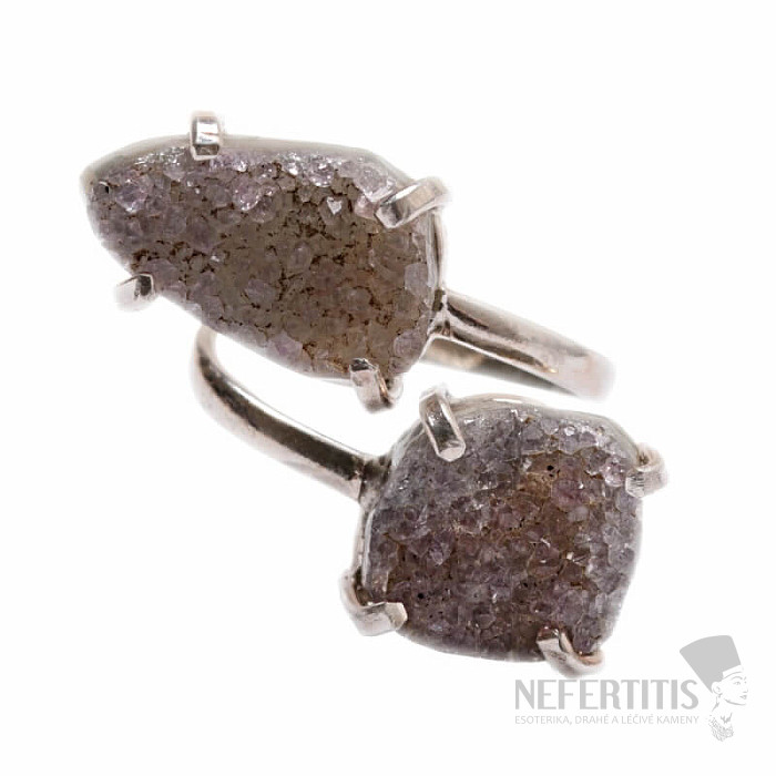 Discover the charm of gentle elegance with this silver-plated ring, dominated by two amethyst druses. Each stone is original. The ring is a celebration of feminine beauty and individuality. Amethyst is a stone of passion, love and understanding. Material: natural stone, silver-plated brass. You are purchasing the ring pictured.