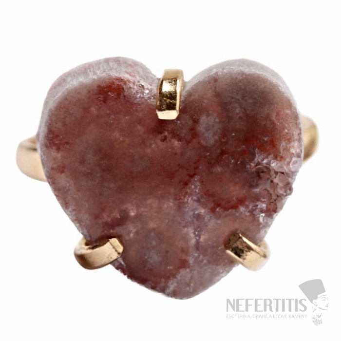 Discover the charm of gentle elegance with this gold-plated ring, dominated by a heart made of pink amethyst. This mineral was discovered relatively recently, in Patagonia, Argentina. Its mining is limited, making it even rarer. Each stone is original. The ring is a celebration of feminine beauty and individuality. Amethyst is a stone of passion, love and understanding. Material: natural stone, gold-plated brass. You are purchasing the ring pictured.