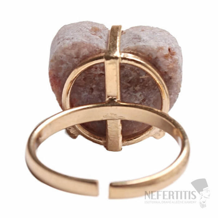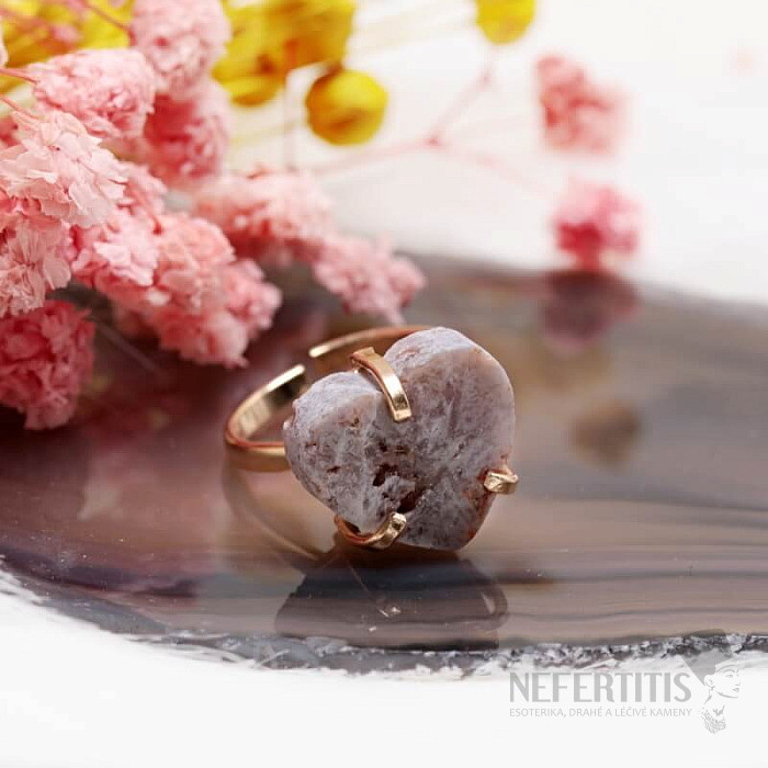 Discover the charm of gentle elegance with this gold-plated ring, dominated by a heart made of pink amethyst. This mineral was discovered relatively recently, in Patagonia, Argentina. Its mining is limited, making it even rarer. Each stone is original. The ring is a celebration of feminine beauty and individuality. Amethyst is a stone of passion, love and understanding. Material: natural stone, gold-plated brass. You are purchasing the ring pictured.