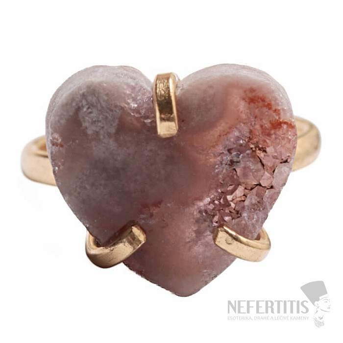 Discover the charm of gentle elegance with this gold-plated ring, dominated by a heart made of pink amethyst. This mineral was discovered relatively recently, in Patagonia, Argentina. Its mining is limited, making it even rarer. Each stone is original. The ring is a celebration of feminine beauty and individuality. Amethyst is a stone of passion, love and understanding. Material: natural stone, gold-plated brass. You are purchasing the ring pictured.