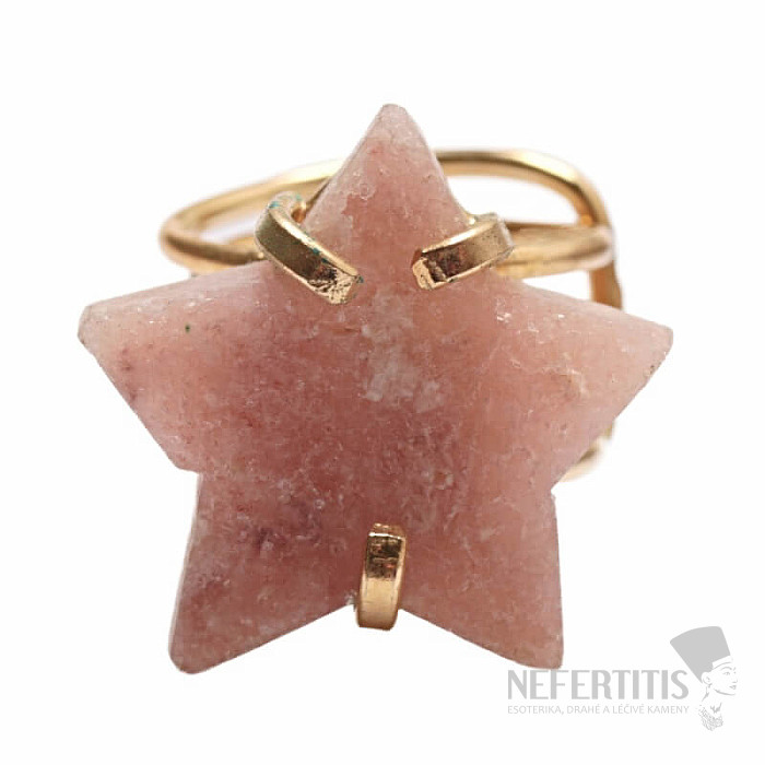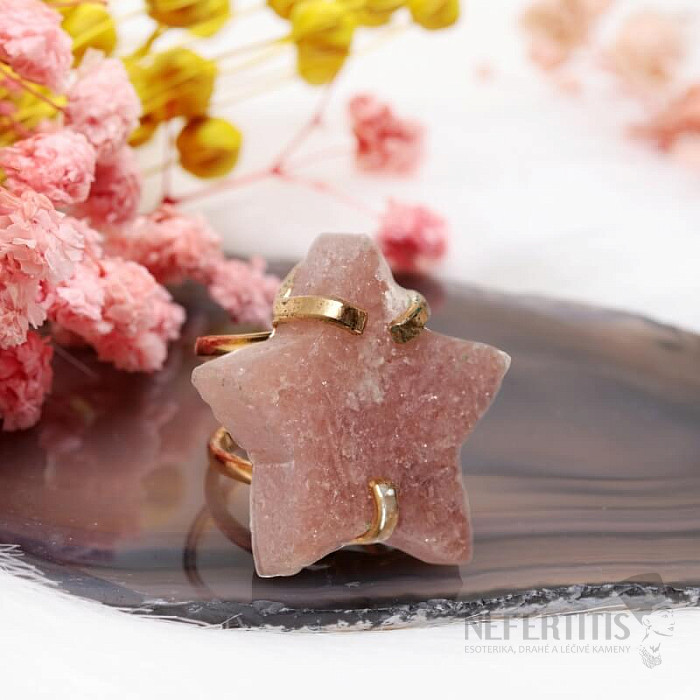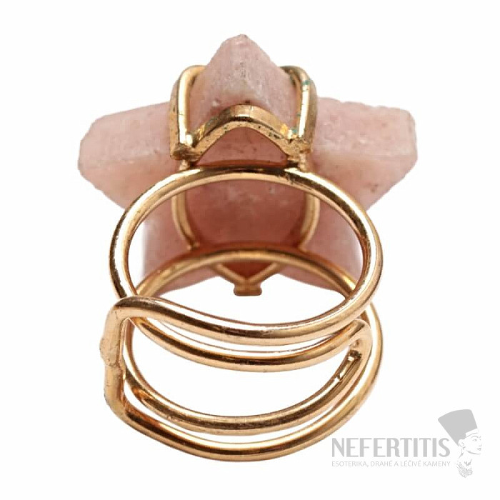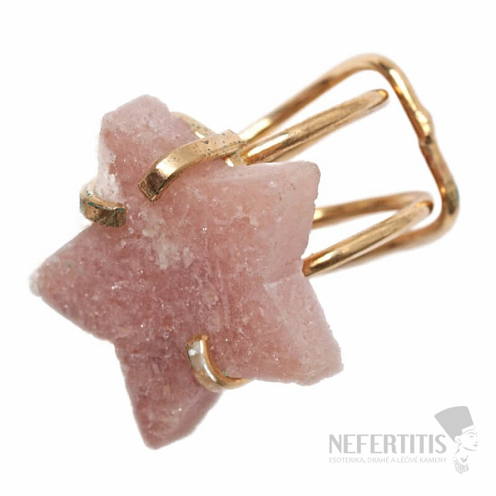Discover the charm of gentle elegance with this gold-plated ring, the dominant feature of which is a star made of pink amethyst. This mineral was discovered relatively recently, in Patagonia, Argentina. Its mining is limited, making it even rarer. Each stone is original. The ring is a celebration of feminine beauty and individuality. Amethyst is a stone of passion, love and understanding. Material: natural stone, gold-plated brass. You are purchasing the ring pictured.