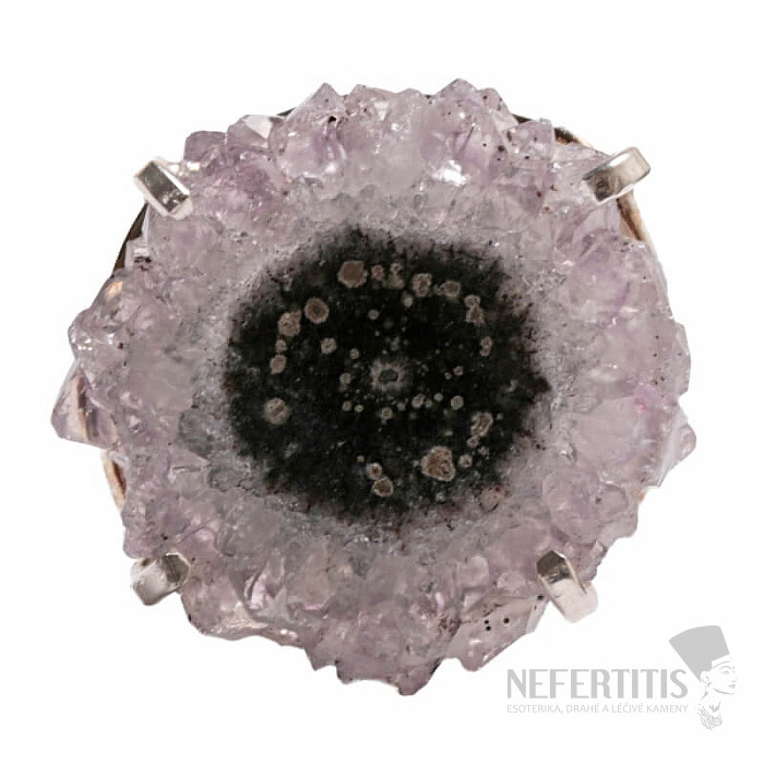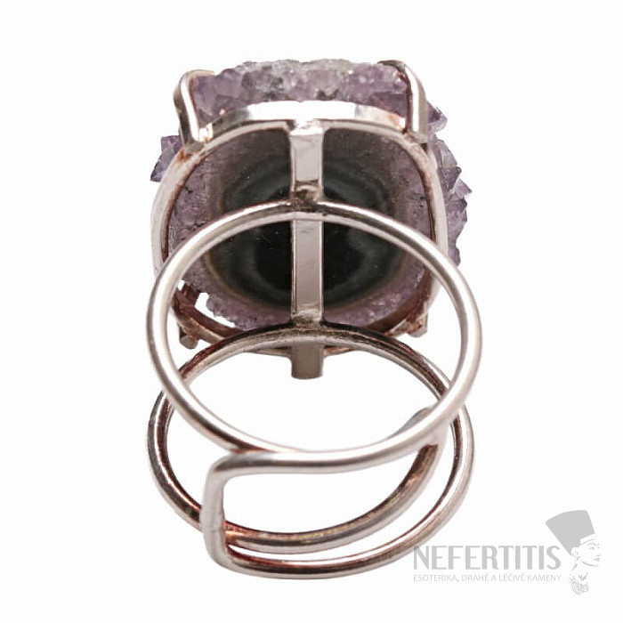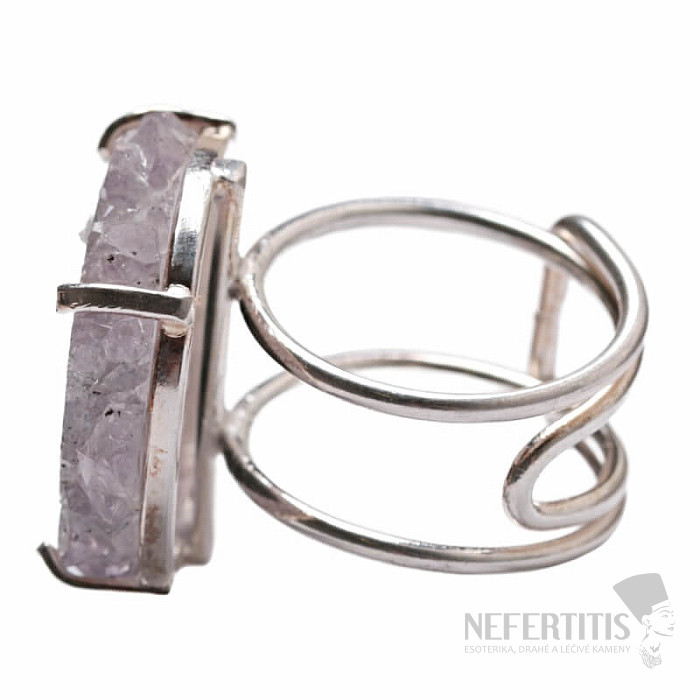 Discover the charm of elegance with this silver-plated ring, whose dominant feature is the stalactite cut of amethyst. Each stone is original. Amethyst is a stone of love, passion and understanding. Material: natural stone, silver-plated brass. You are purchasing the ring pictured.