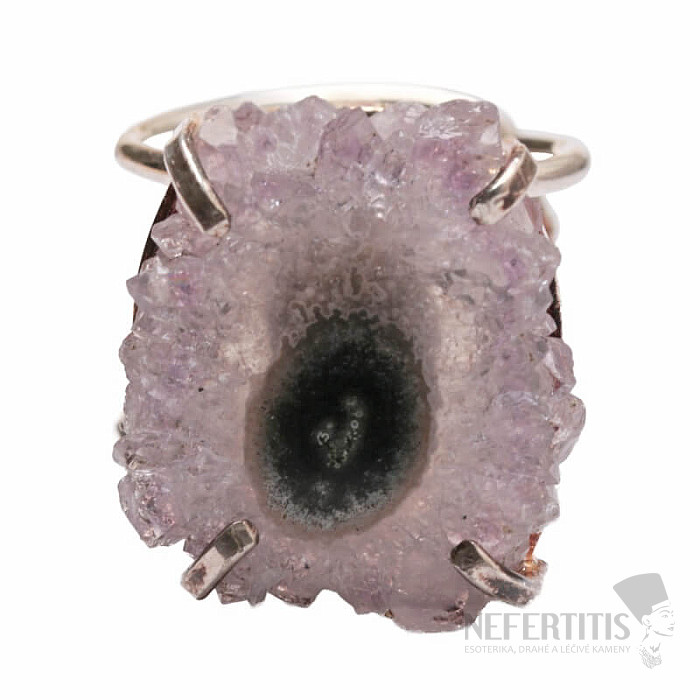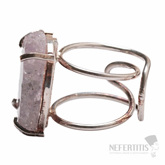 Discover the charm of elegance with this silver-plated ring, whose dominant feature is the stalactite cut of amethyst. Each stone is original. Amethyst is a stone of love, passion and understanding. Material: natural stone, silver-plated brass. You are purchasing the ring pictured.
