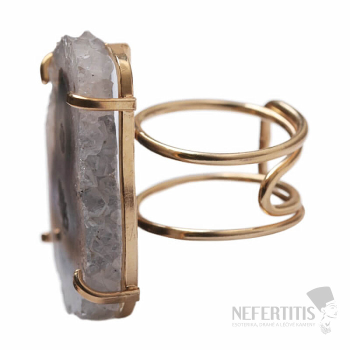Discover the charm of elegance with this gold-plated ring, whose dominant feature is the stalactite cut of amethyst. Each stone is original. Amethyst is a stone of love, passion and understanding. Material: natural stone, gold-plated brass. You are purchasing the ring shown.