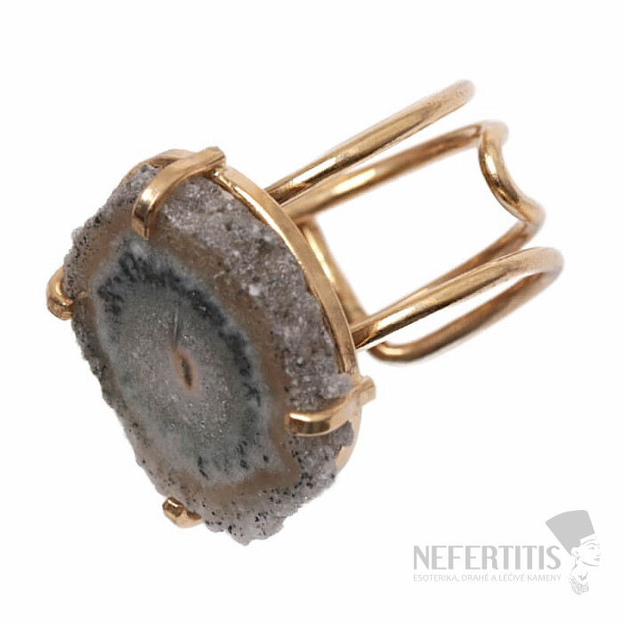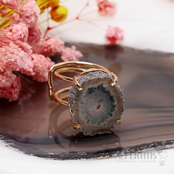 Discover the charm of elegance with this gold-plated ring, the dominant feature of which is the cut of a stalactite - stalactite of amethyst. Each stone is original. Amethyst is a stone of love, passion and understanding. Material: natural stone, gold-plated brass. You are purchasing the ring shown.
