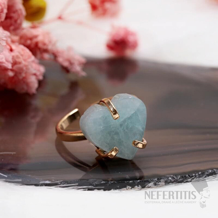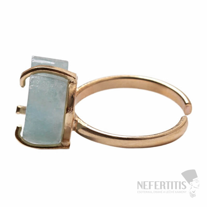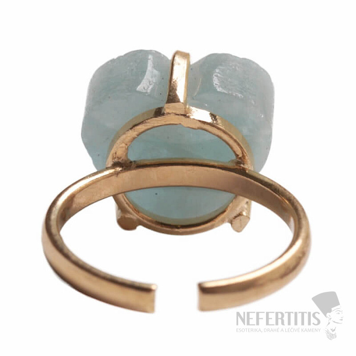 Discover the charm of elegance with this gold-plated aquamarine ring . Aquamarine is the stone of the deep sea and the clear sky. Each stone is original. Aquamarine is known as a stone of courage, peace and true communication. It calms the mind, helps to get rid of fear and supports the expression of inner feelings with kindness and confidence. It is a popular talisman for those seeking harmony between the heart and voice. Material: natural stone, gold-plated brass. You are purchasing the jewelry pictured.