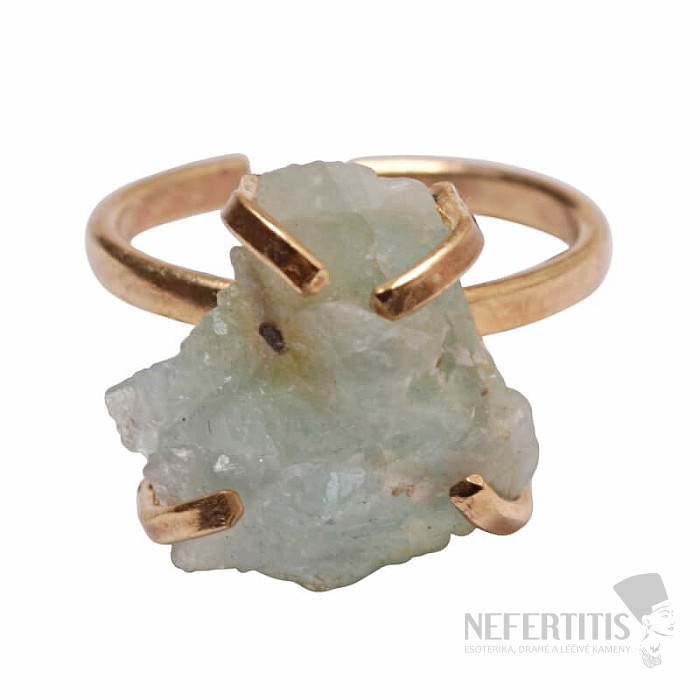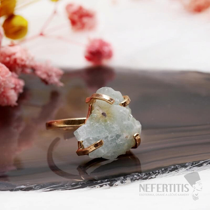Discover the charm of elegance with this gold-plated aquamarine ring . Aquamarine is the stone of the deep sea and the clear sky. Each stone is original. Aquamarine is known as a stone of courage, peace and true communication. It calms the mind, helps to get rid of fear and supports the expression of inner feelings with kindness and confidence. It is a popular talisman for those seeking harmony between the heart and voice. Material: natural stone, gold-plated brass. You are purchasing the jewelry pictured.