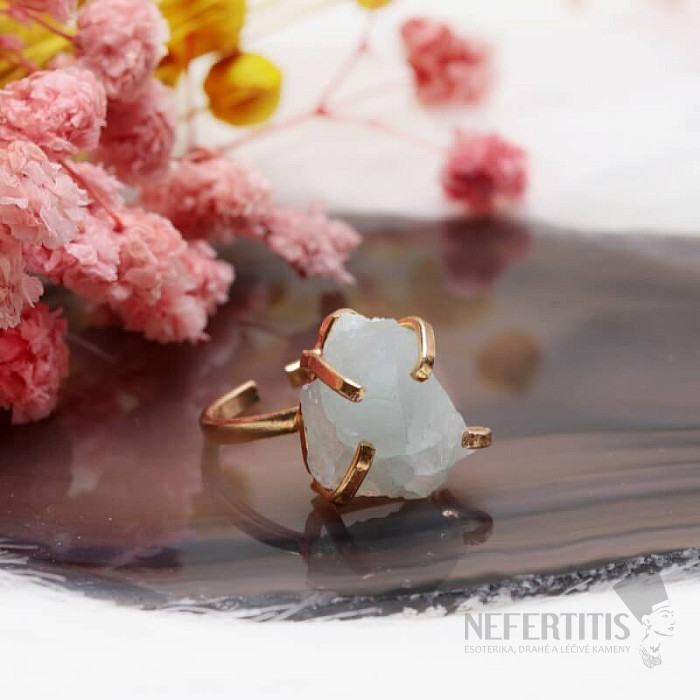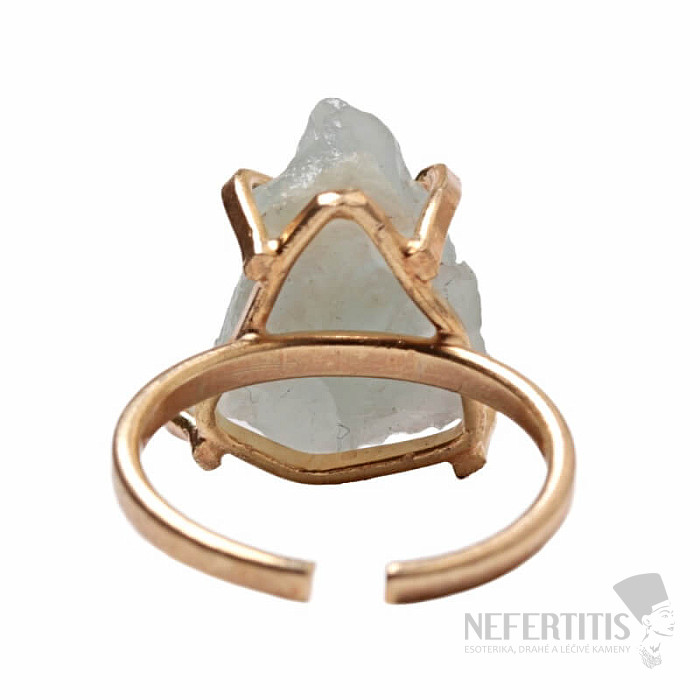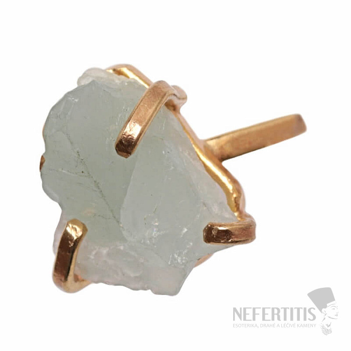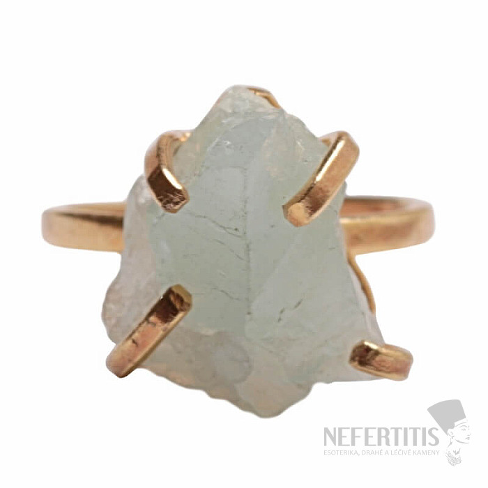 Discover the charm of elegance with this gold-plated aquamarine ring . Aquamarine is the stone of the deep sea and the clear sky. Each stone is original. Aquamarine is known as a stone of courage, peace and true communication. It calms the mind, helps to get rid of fear and supports the expression of inner feelings with kindness and confidence. It is a popular talisman for those seeking harmony between the heart and voice. Material: natural stone, gold-plated brass. You are purchasing the jewelry pictured.