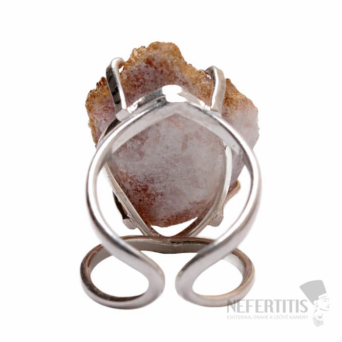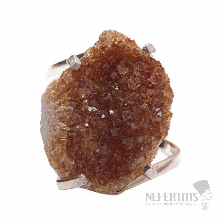 Discover the magic of sparkling elegance with this silver-plated ring, dominated by a distinctive citrine druse made up of tiny crystals that resemble golden sand or sun rays. Each stone is original. Citrine is a stone of abundance, joy and personal strength. Material: natural stone, silver-plated brass. You are purchasing the ring pictured.