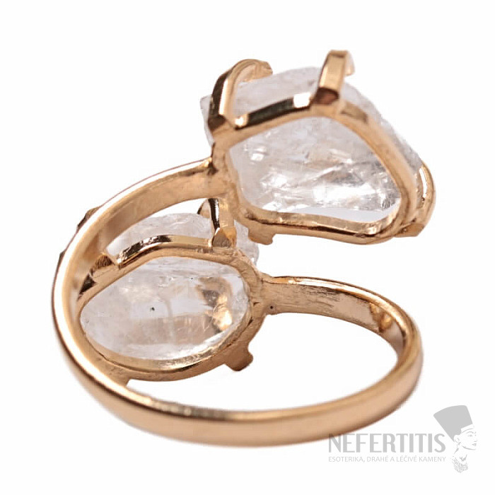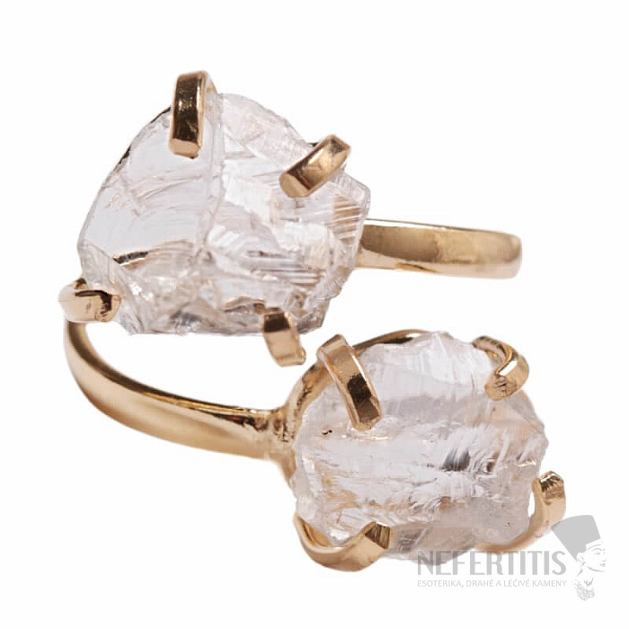 Discover the charm of gentle elegance with this gold-plated ring, dominated by two crystals of crystal. Each stone is original. Crystal is considered a universal crystal. Its irregular shape and natural beauty make it a unique piece of jewelry with a soul. Material: natural stone, gold-plated brass. You are purchasing the ring pictured.