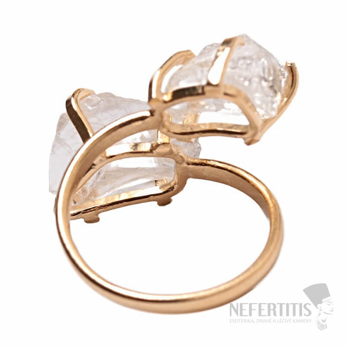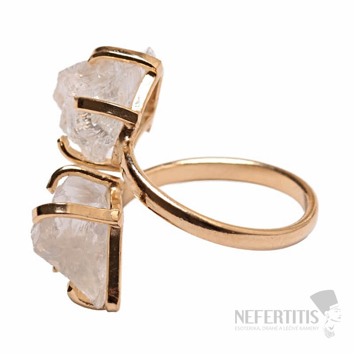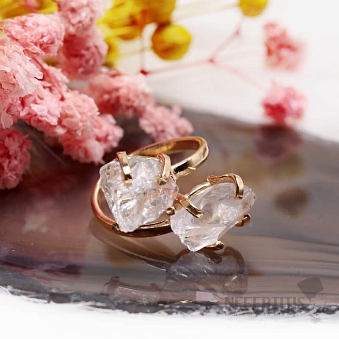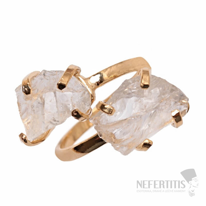 Discover the charm of gentle elegance with this gold-plated ring, dominated by two crystals of crystal. Each stone is original. Crystal is considered a universal crystal. Its irregular shape and natural beauty make it a unique piece of jewelry with a soul. Material: natural stone, gold-plated brass. You are purchasing the ring pictured.
