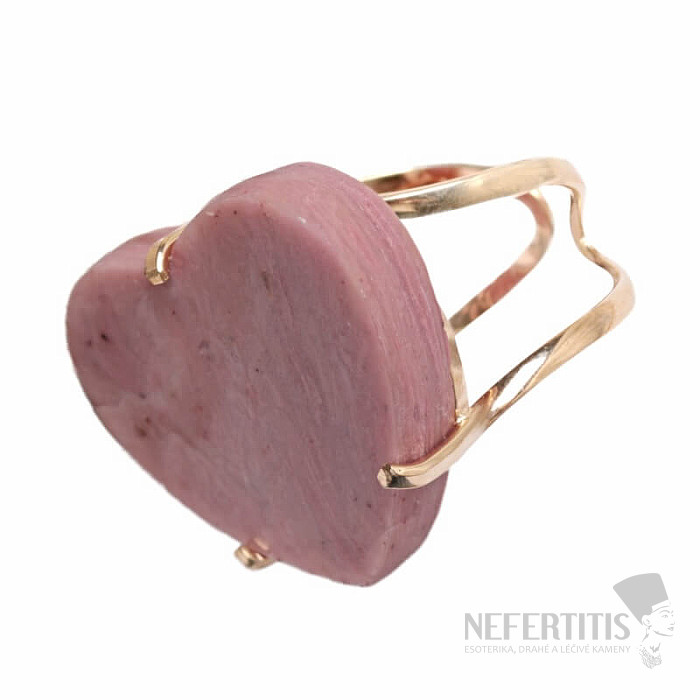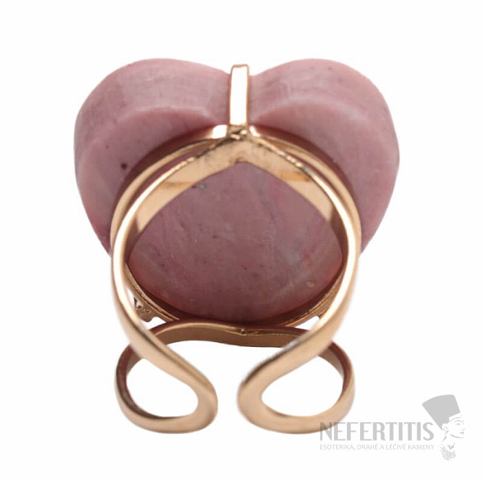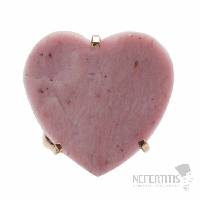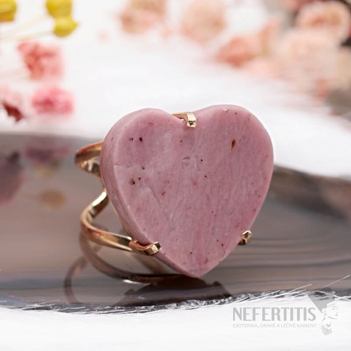 Discover the charm of gentle elegance with this gold-plated ring, dominated by a large strawberry crystal in the shape of a heart . Each stone is original. It is characterized by delicate pink tones and natural inclusions. The heart symbolizes love, joy, happiness, and the crystal encourages self-love, gentleness, harmony and inner peace. Material: natural stone, gold-plated brass. You are purchasing the ring pictured.
