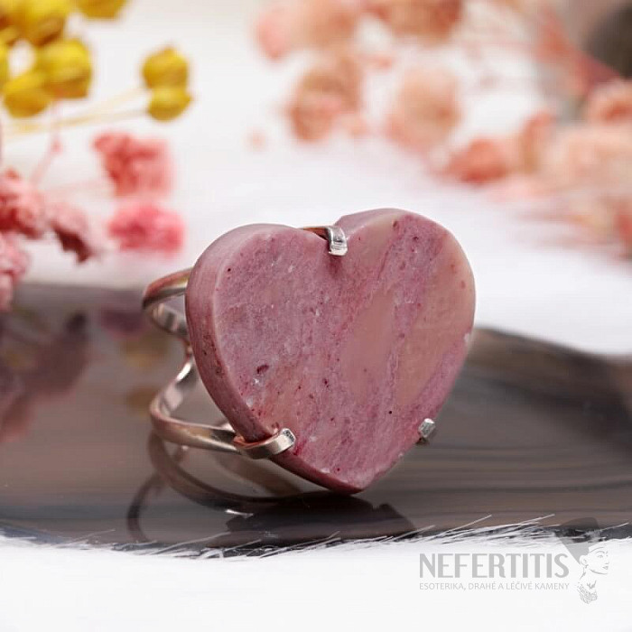 Discover the charm of gentle elegance with this silver-plated ring, dominated by a large strawberry crystal in the shape of a heart . Each stone is original. It is characterized by delicate pink tones and natural inclusions. The heart symbolizes love, joy, happiness and the crystal encourages self-love, gentleness, harmony and inner peace. Material: natural stone, silver-plated brass. You are purchasing the ring pictured.
