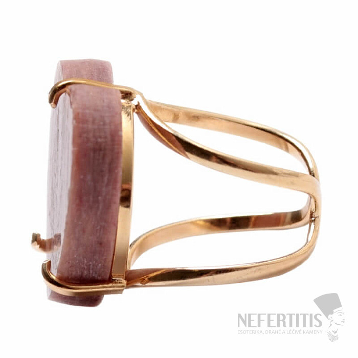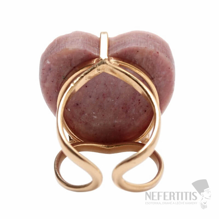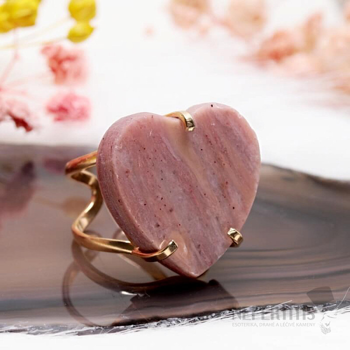 Discover the charm of gentle elegance with this gold-plated ring, dominated by a large strawberry crystal in the shape of a heart . Each stone is original. It is characterized by delicate pink tones and natural inclusions. The heart symbolizes love, joy, happiness, and the crystal encourages self-love, gentleness, harmony and inner peace. Material: natural stone, gold-plated brass. You are purchasing the ring pictured.