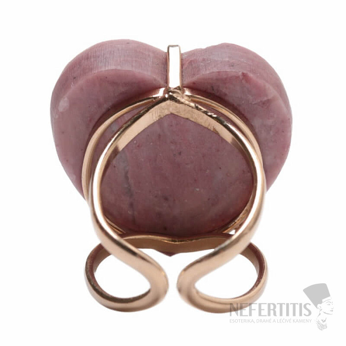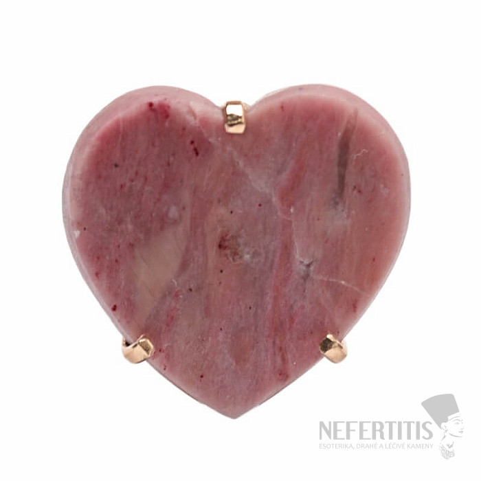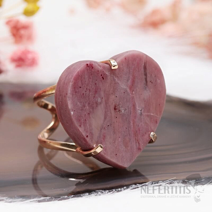 Discover the charm of gentle elegance with this gold-plated ring, dominated by a large strawberry crystal in the shape of a heart . Each stone is original. It is characterized by delicate pink tones and natural inclusions. The heart symbolizes love, joy, happiness, and the crystal encourages self-love, gentleness, harmony and inner peace. Material: natural stone, gold-plated brass. You are purchasing the ring pictured.