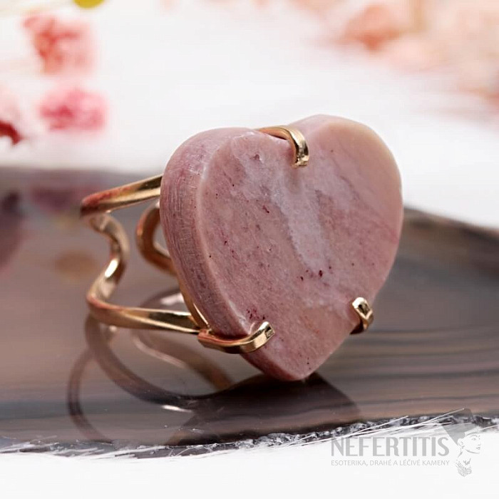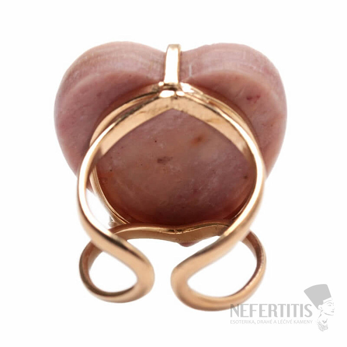 Discover the charm of gentle elegance with this gold-plated ring, dominated by a large strawberry crystal in the shape of a heart . Each stone is original. It is characterized by delicate pink tones and natural inclusions. The heart symbolizes love, joy, happiness, and the crystal encourages self-love, gentleness, harmony and inner peace. Material: natural stone, gold-plated brass. You are purchasing the ring pictured.