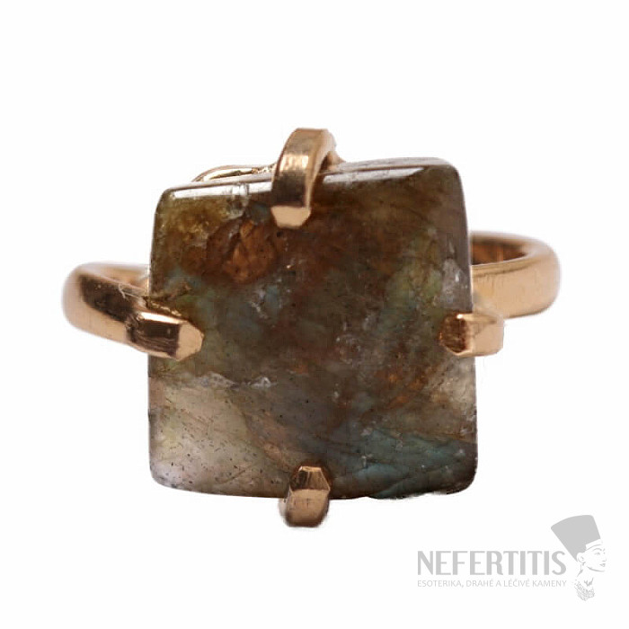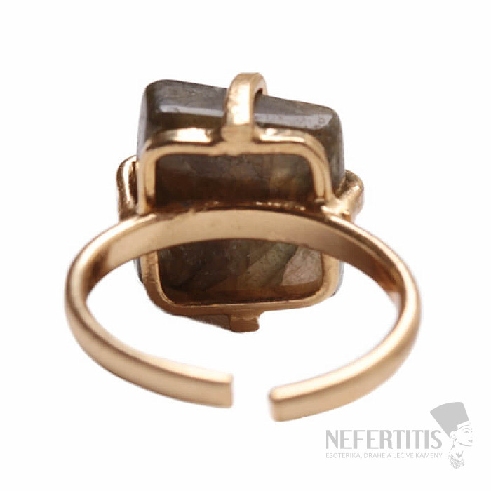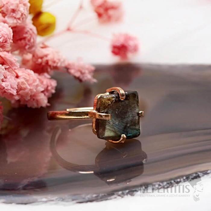Discover the magic of elegance with this gold-plated labradorite ring with a mysterious play of blue and golden reflections. Each stone is an original that shines depending on the angle of the light. Labradorite is a stone of intuition, protection and transformation. Material: natural stone, gold-plated brass. You are purchasing the ring shown.