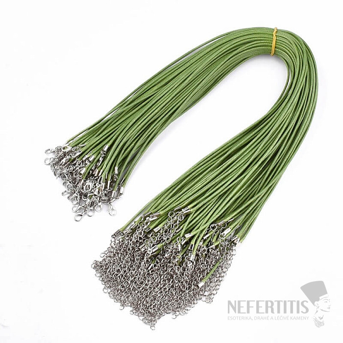 Olive waxed cord for hanging silver and other pendants, donuts, etc. Length approx. 45 cm, can be extended to approx. 49 cm. Material: waxed cord, base metal.