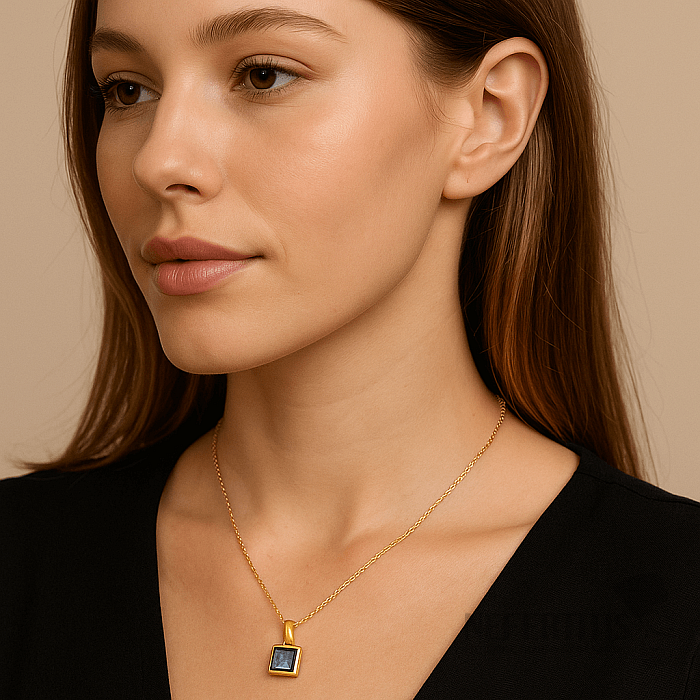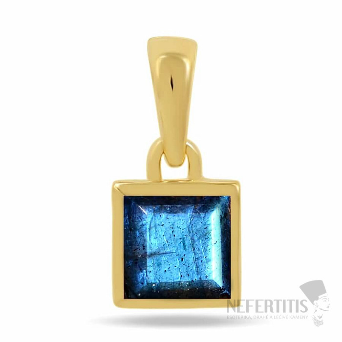 This modern and elegant gold-plated pendant from the Concetta collection is made of genuine 925/1000 silver , covered with a durable layer of 14k gold for a lasting warm and luxurious shade. The center of the jewelry is a natural labradorite measuring approximately 6 mm , set in a smooth square bed.