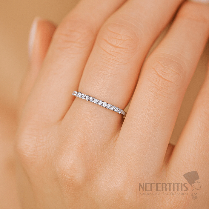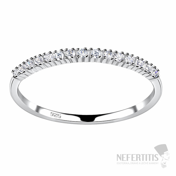The ring weighs 0.9 g , making it lightweight and comfortable to wear. The clear cut cubic zirconia (CZ) create a sparkling line that beautifully catches the light and gives the jewelry a luxurious look. This type of design is also often called an eternity ring - a ring of eternity , which symbolizes endless love, loyalty and a lasting bond .