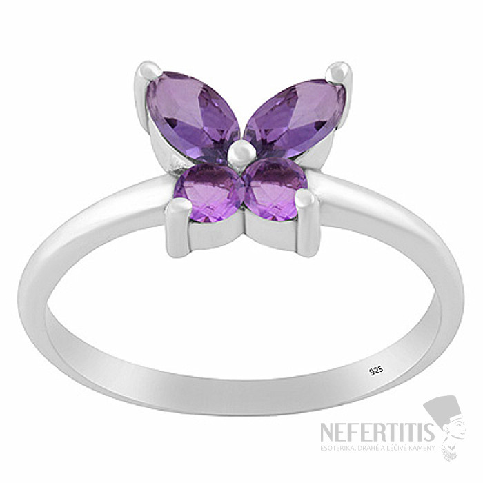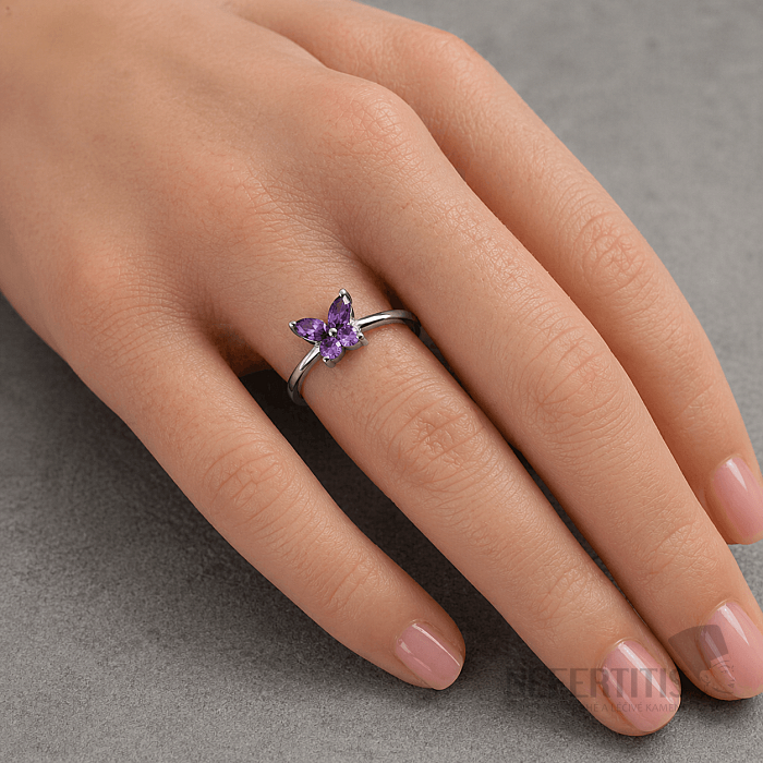Amethyst stands out with its typical purple color, which looks luxurious, delicate and mystical at the same time. Thanks to the butterfly design, this women's silver ring with the stone is a playful but very elegant accessory.