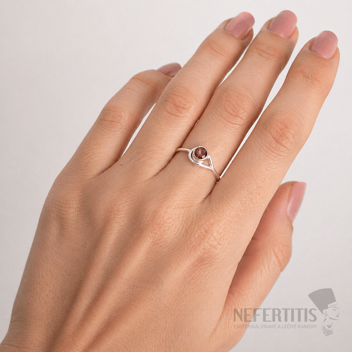 Garnet stands out with its deep red to burgundy color, which looks luxurious, sensual and very elegant. Thanks to its minimalist design, the ring is ideal for both everyday wear and festive occasions.