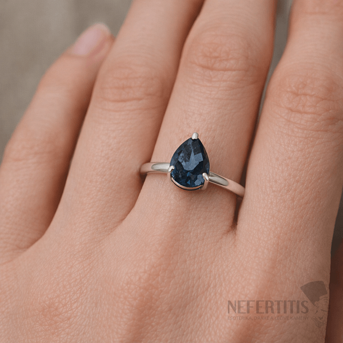 This silver ring with a London Blue topaz drop is an elegant piece of jewelry that combines the beauty of natural stone with a modern and timeless design.