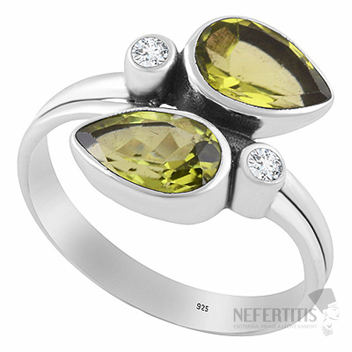 • Luxurious silver ring with olivine and zircons