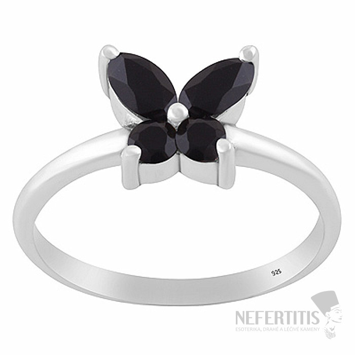 Onyx stands out with its deep black color, which looks luxurious, minimalist and very versatile. Thanks to the butterfly motif, this silver ring with natural stones is a delicate yet striking design accessory.